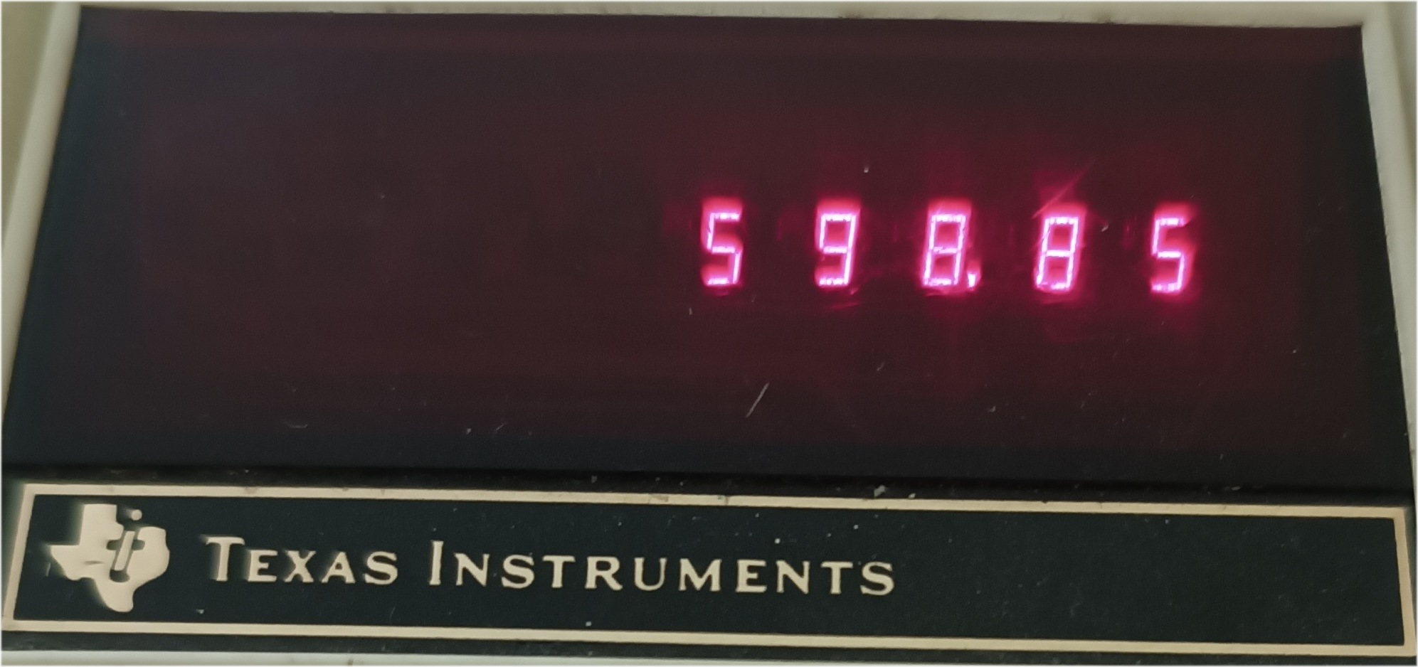 - El siguiente paso fue la visualización mediante dígitos LED con lentes, empleada, en las calculadoras como la TI-1270 o la TI-57. Los LED emiten luz propia y, aunque son bastante eficientes, consumen suficiente energía como para agotar las pilas con rapidez. En la misma época aparecieron relojes de pulsera con esta tecnología y, para que no se agotara la pila, tenían un pulsador para encender el display durante unos segundos, así solo consumía energía cuando era necesario.