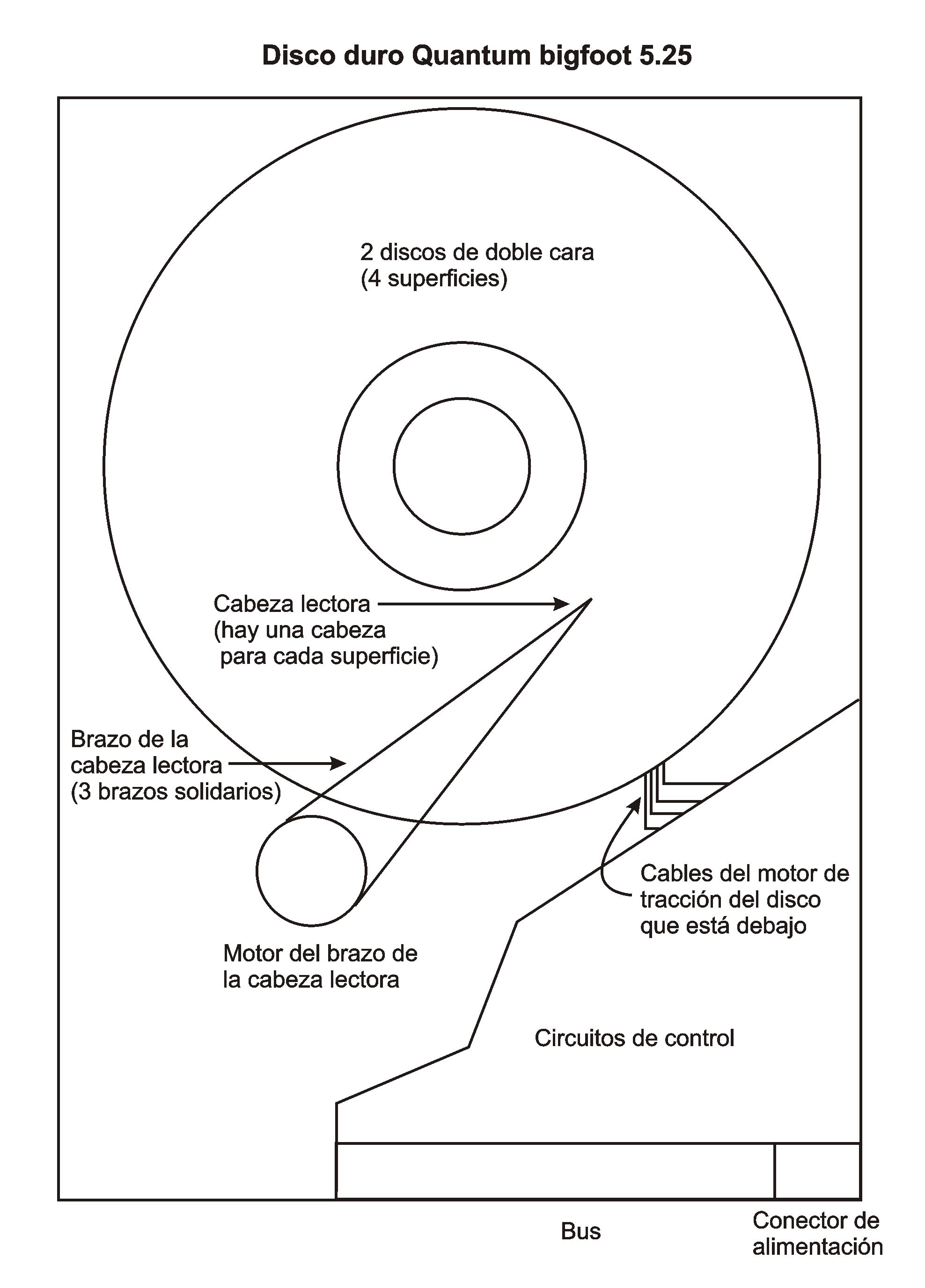 Un disco duro generalmente está compuesto por las siguientes partes (ver esquema):