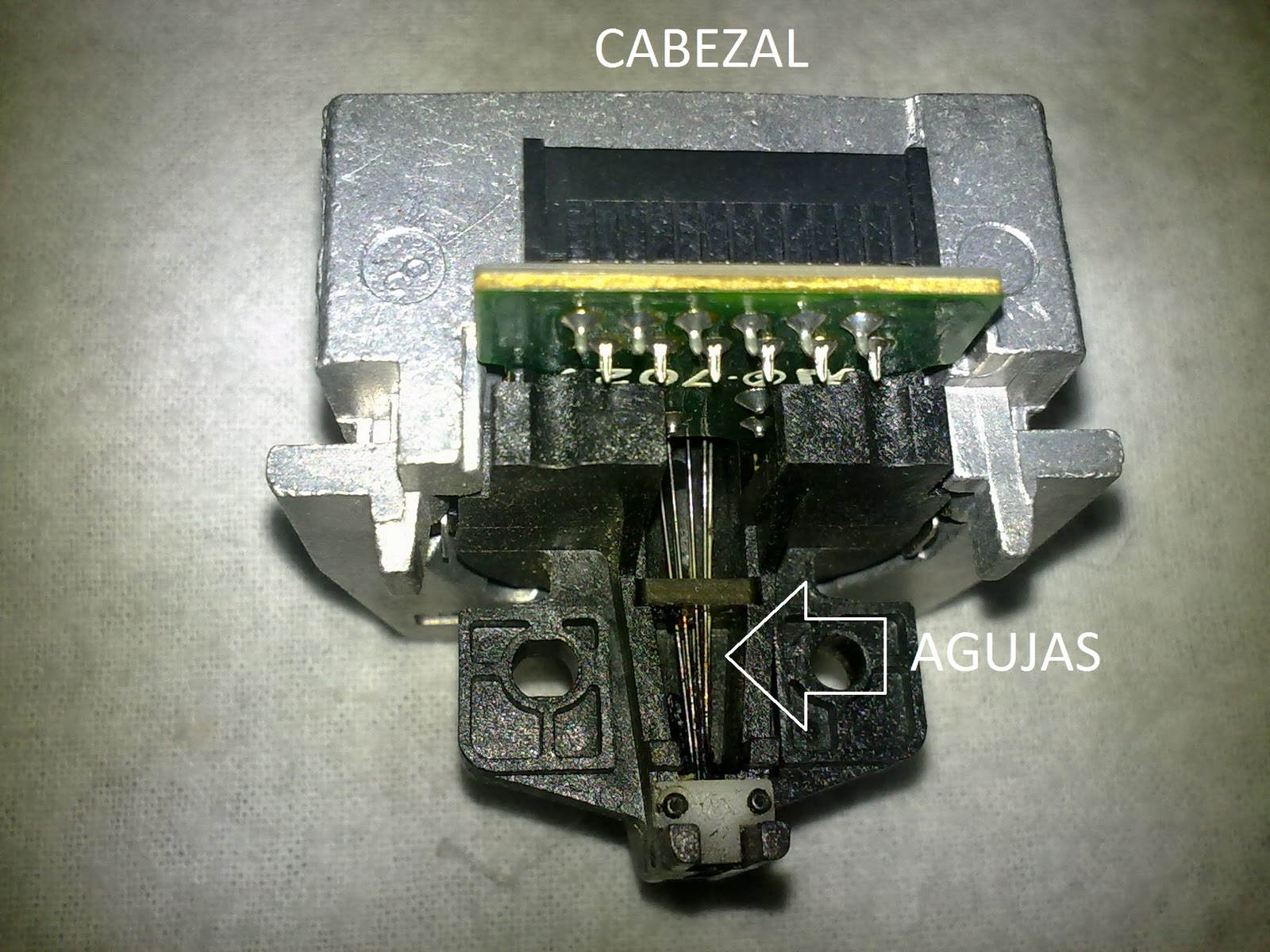 - La cabeza de impresión contiene pequeñas agujas (existen con 9, 18 y 24, a mayor cantidad de ellas, mayor resolución) que salen para formar el carácter golpeando contra una cinta entintada sobre el papel.