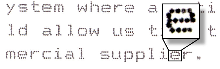 - La información de cada carácter a imprimir se lleva a la cabeza. La electrónica de la impresora se encarga de transfomar e código del carácter a imprimir en los puntos que deben imprimirse.