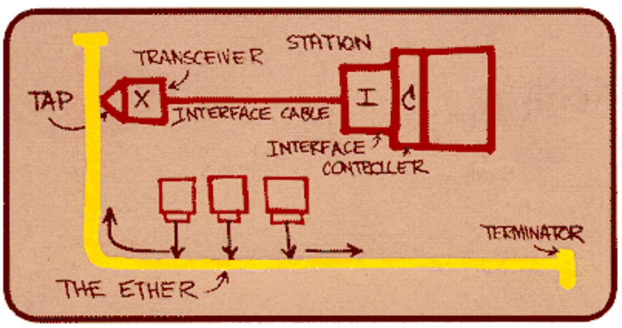 - El inicio de Ethernet (1973): Inspirado por ALOHA, Robert Metcalfe en Xerox PARC adaptó el concepto para redes cableadas. El primer prototipo funcionaba a 2.94 Mbps y utilizaba un protocolo llamado CSMA/CD (Carrier Sense Multiple Access with Collision Detection, acceso múltiple con escucha de portadora y detección de colisiones) para detectar y resolver las "colisiones" de datos cuando dos equipos trataban de transmitir información al mismo tiempo.